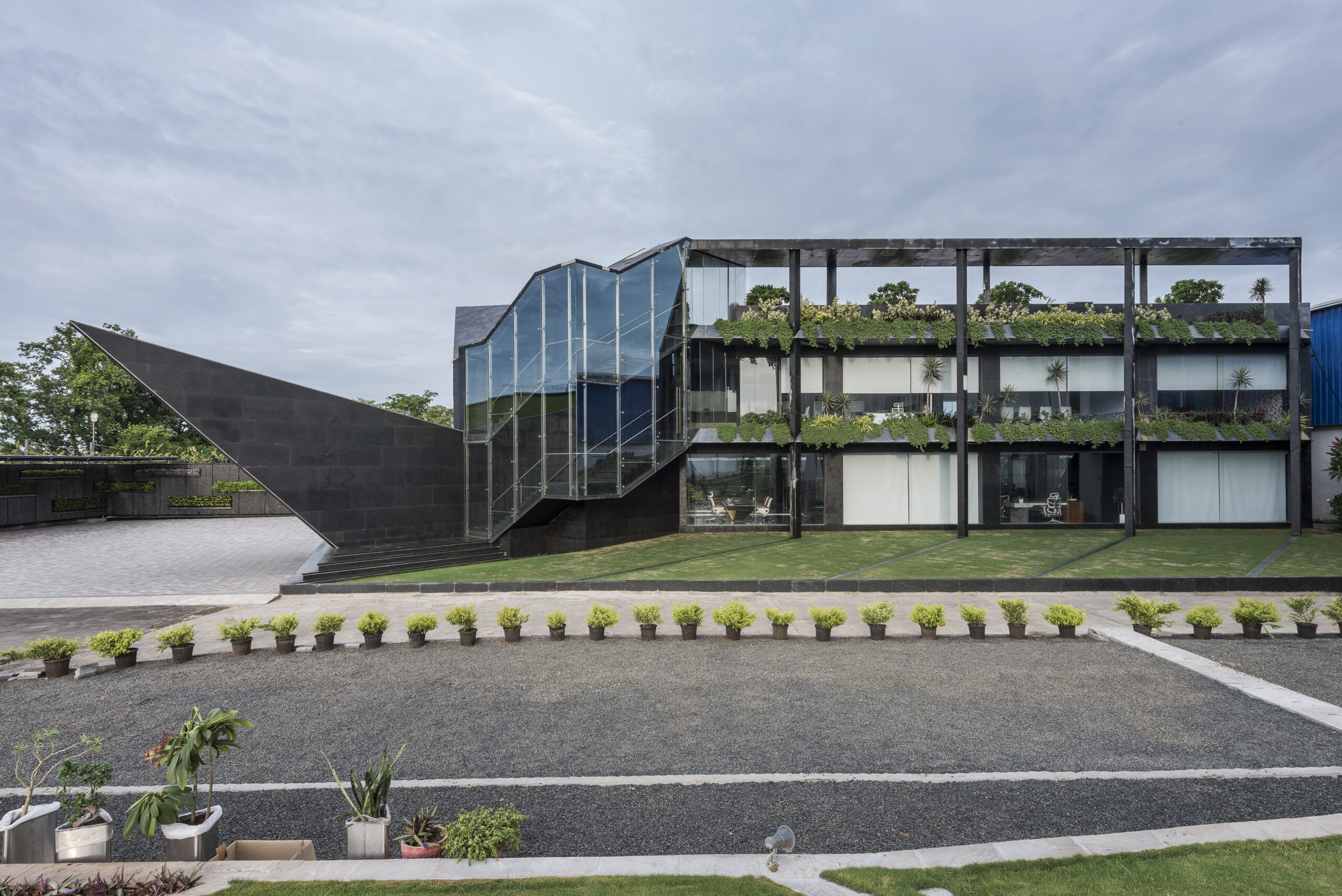 Every structure we design aims to display an extraordinary character while responsibly participating in the overall landscape. This means our buildings stand out through creative form or façade design, yet they belong to their environment rather than dominate it. Our team leverages modern construction technologies and innovative materials – from exploring cross-laminated timber for sustainable construction to designing parametric facades that play with light and shadow. We handle a variety of architectural projects: residential architecture (luxury homes, bungalows, apartments), commercial architecture (office buildings, retail outlets, mixed-use developments), and even industrial architecture (factories, warehouses, R&D centers) tailored for efficiency and safety. In each case, proportions and scale are carefully considered to humanize the design, so even a large industrial facility feels approachable and even aesthetically pleasing, not monolithic. We also integrate landscape and architecture seamlessly – our architects work closely with our landscape designers to ensure the building and its outdoor spaces form a unified experience. Sustainability is at the heart of our architectural practice: we incorporate passive solar design, rainwater harvesting, energy-efficient building systems, and green architecture principles to create structures that are future-forward (eco-friendly homes, energy-efficient offices, etc.). Ultimately, our architecture is about creating lasting landmarks that serve their users beautifully and stand the test of time.