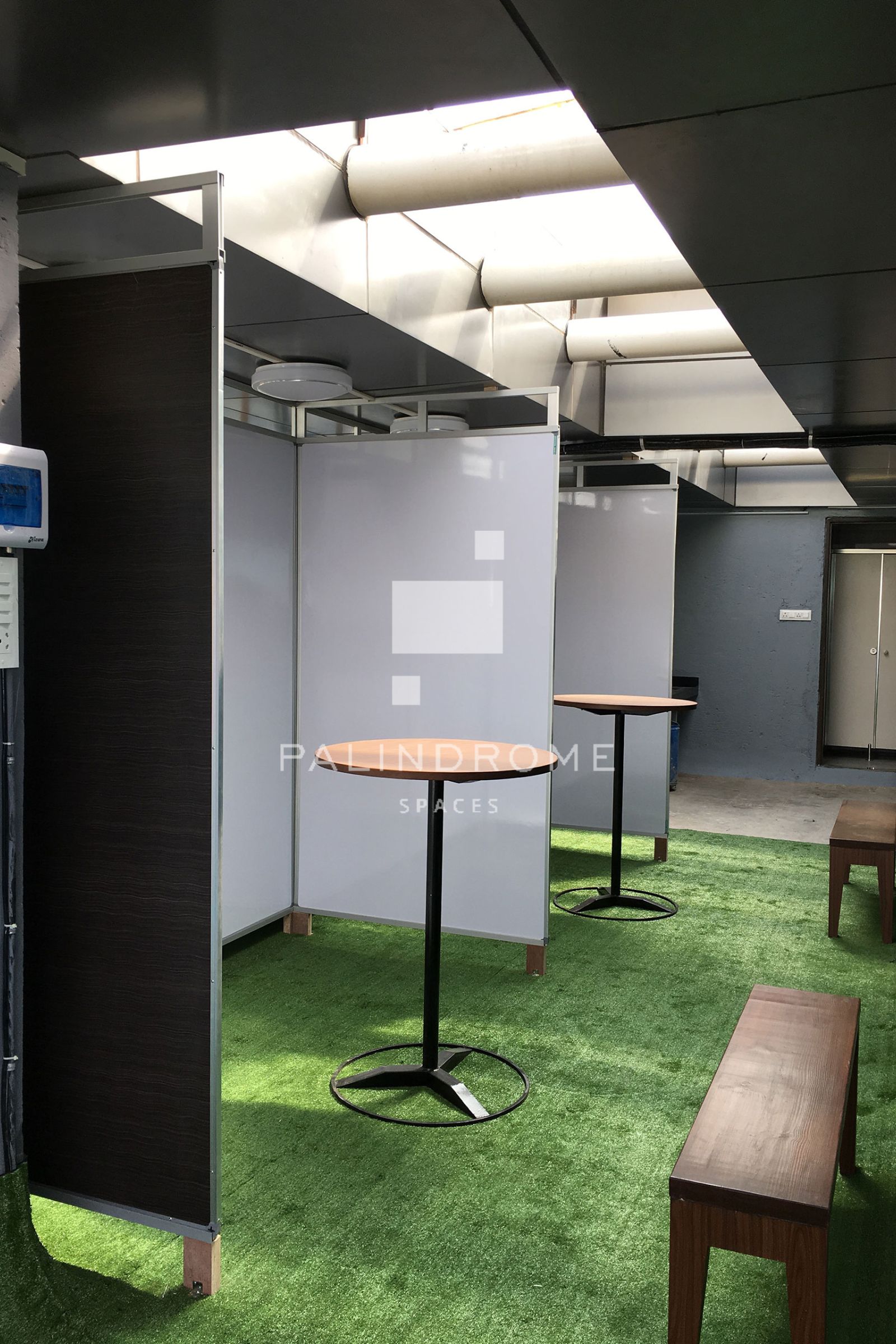 The outdoor informal office section was designed and executed over a period of merely 15 days. The project in every sense entailed the chasing of stringent timelines & handover schedules. This workspace spreads over an area of 2,500 sq.ft & is tailored with a customized atmosphere that is an amalgamation of quirky elements & young eclectic energy. The premises accommodate 50 employees in the outdoor office section & break the stereotypes of tedious corporate environments. The highlight of this project lies in the spontaneity of its conception & in-situ approach towards its design development on site.